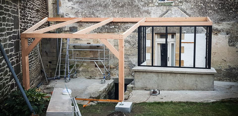 Ci-contre, l'avancement de la construction d'un sas d'entrée et d'un abri bois.